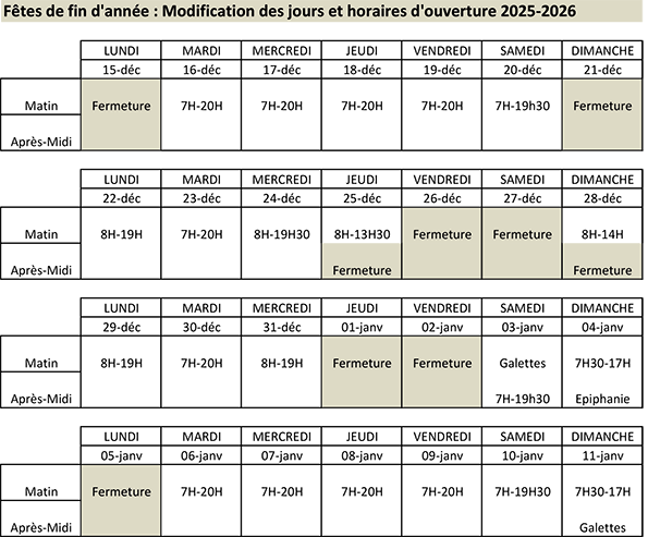 • À partir de décembre 2025, vous pourrez consulter ou télécharger notre Carte des Fêtes 2025-2026